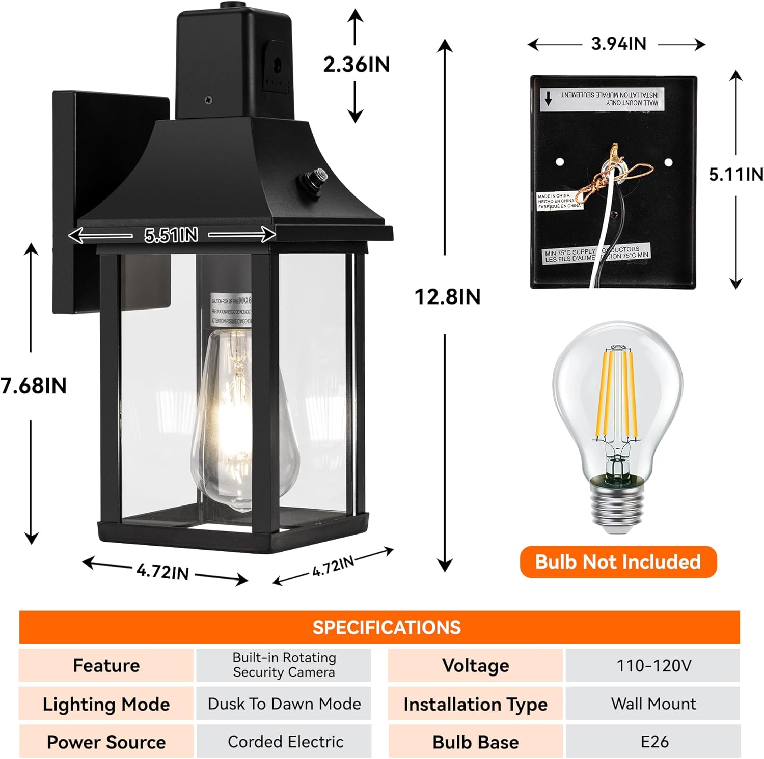 HIHUOS Porch Light with Security Camera Built in Dusk to Dawn Outdoor Lighting – Waterproof Outside Lights Fixture Wall Mount- Exterior Lights for House Garage Front Door