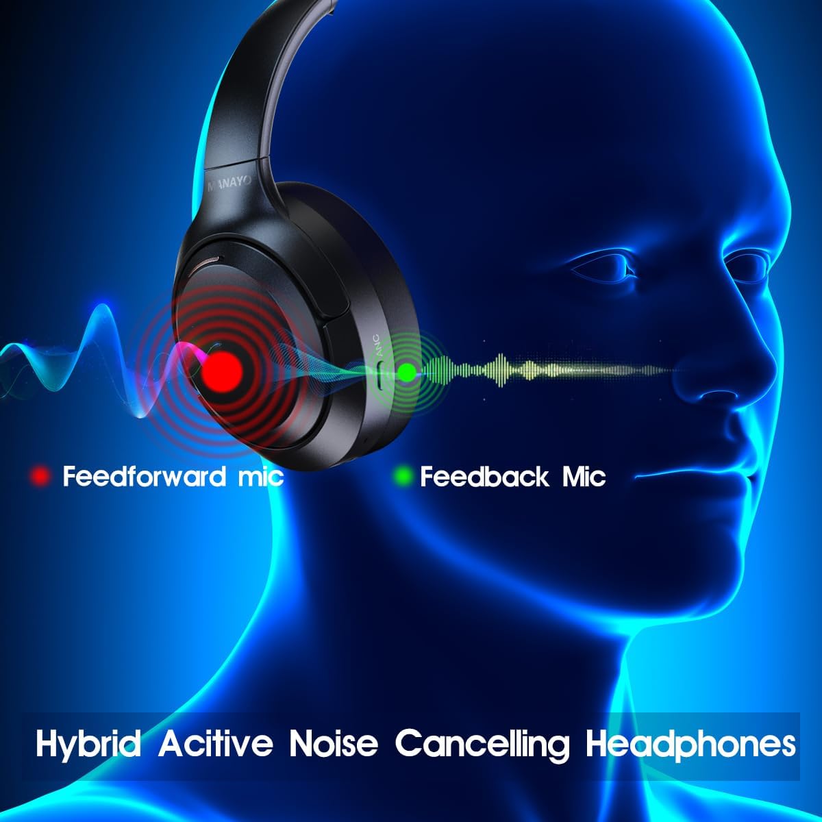 Hybrid Active Noise Cancelling Over Ear Bluetooth Headphones, Wireless ANC Headphones with Microphone for TV, Phone, PC, Laptop, Gym,800mAh Battery, Bluetooth 5.4, Foldable for Travel & Office