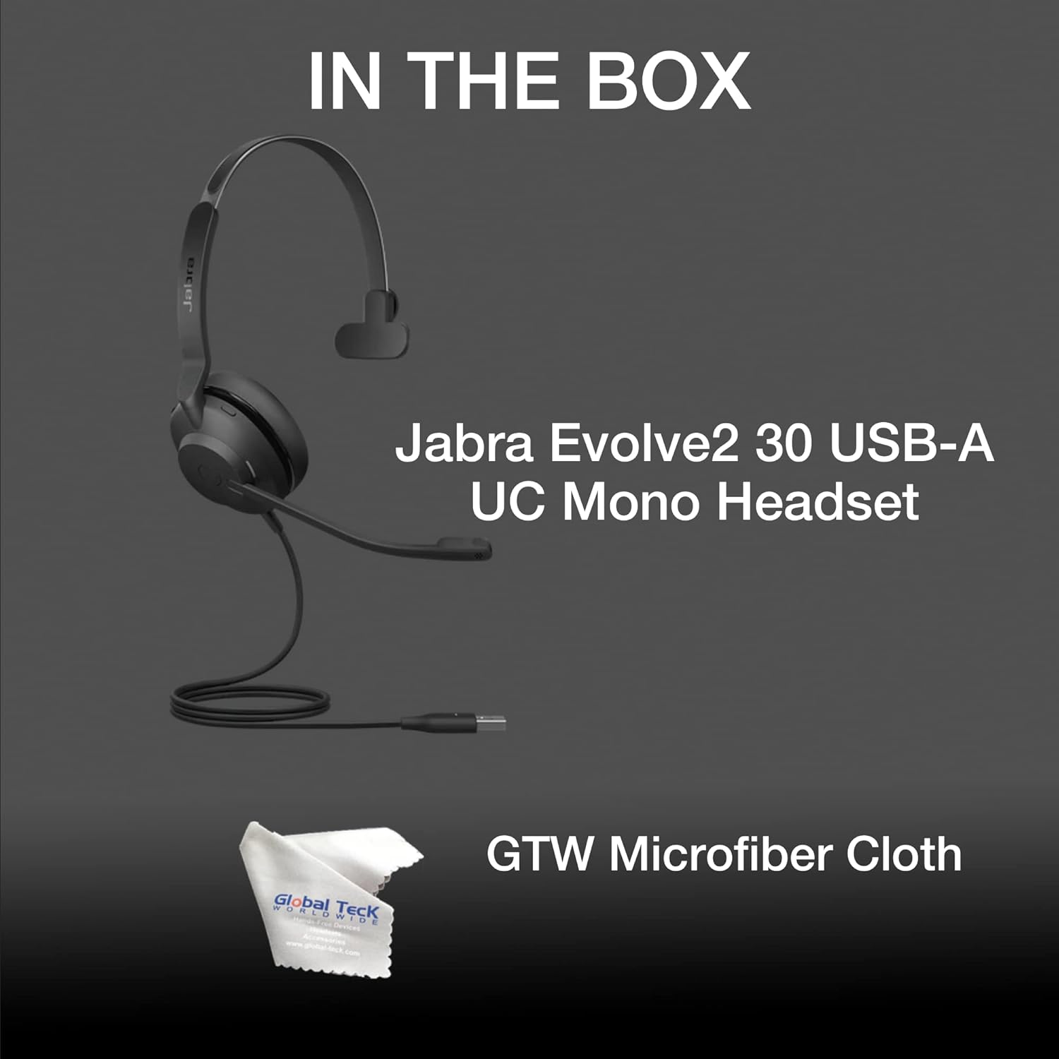 ✅ JABRA BUNDLE OF 2 ITEMS: Jabra Evolve2 30 USB-A, UC Mono Headset and Global Teck Microfiber Cloth