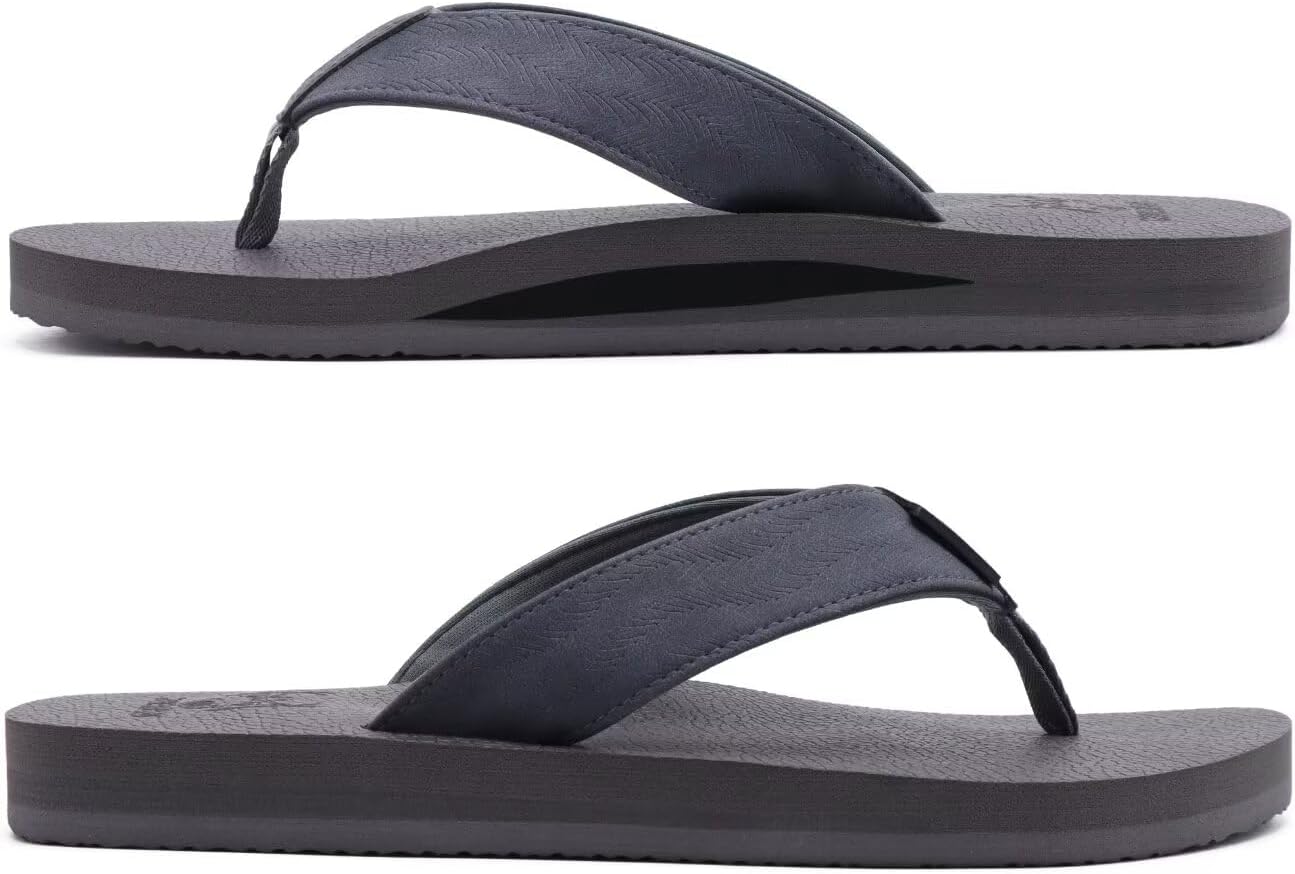 KuaiLu Men’s Yoga Mat Leather Flip Flops with Arch Support Comfortable Cushion Walking Thong Sandals Slip On Indoor Outdoor