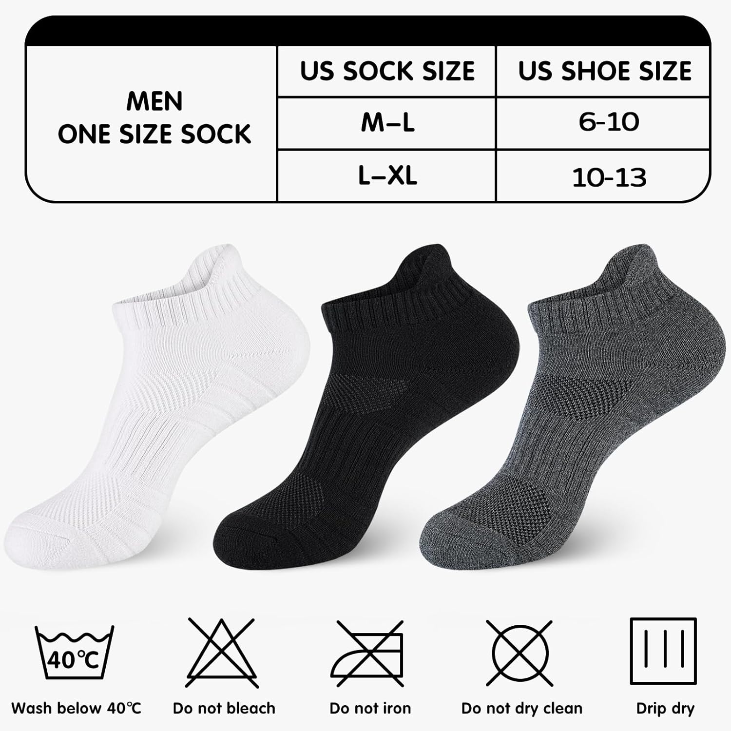 Mens 100% Cotton Ankel Socks, Athletic Cushioned Performance Running Moisture Wicking Breathable socks