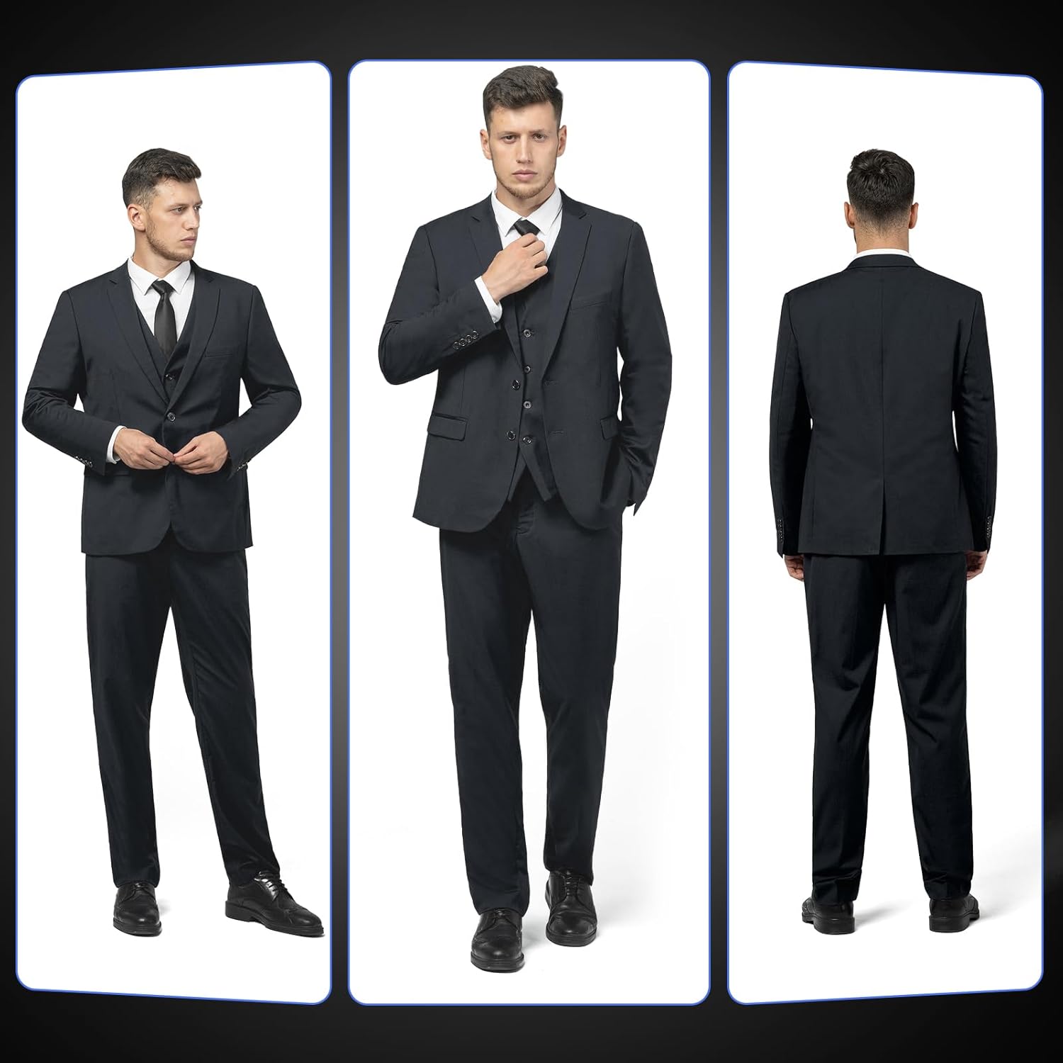 Men’s Slim Fit 3 Piece Suit Set, Two Button Solid Blazer Jacket with Multi-Functional Pockets for Business/Party