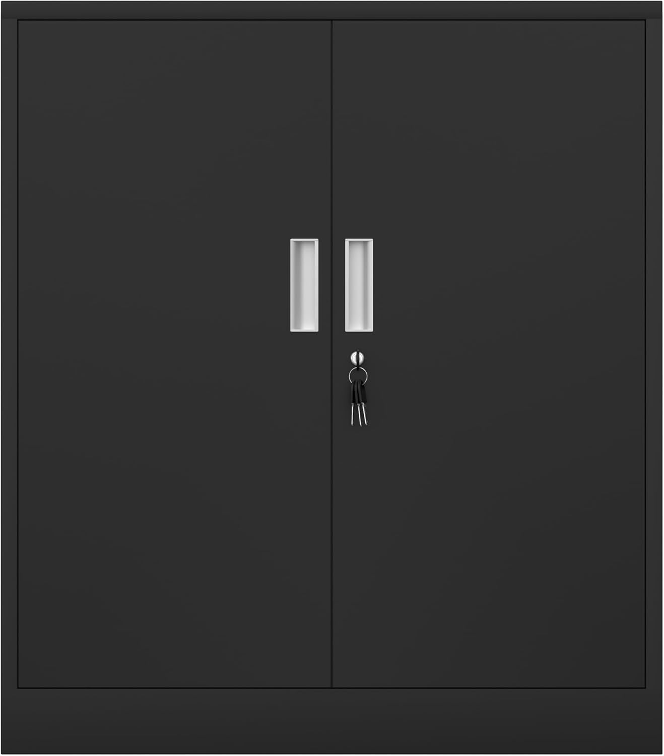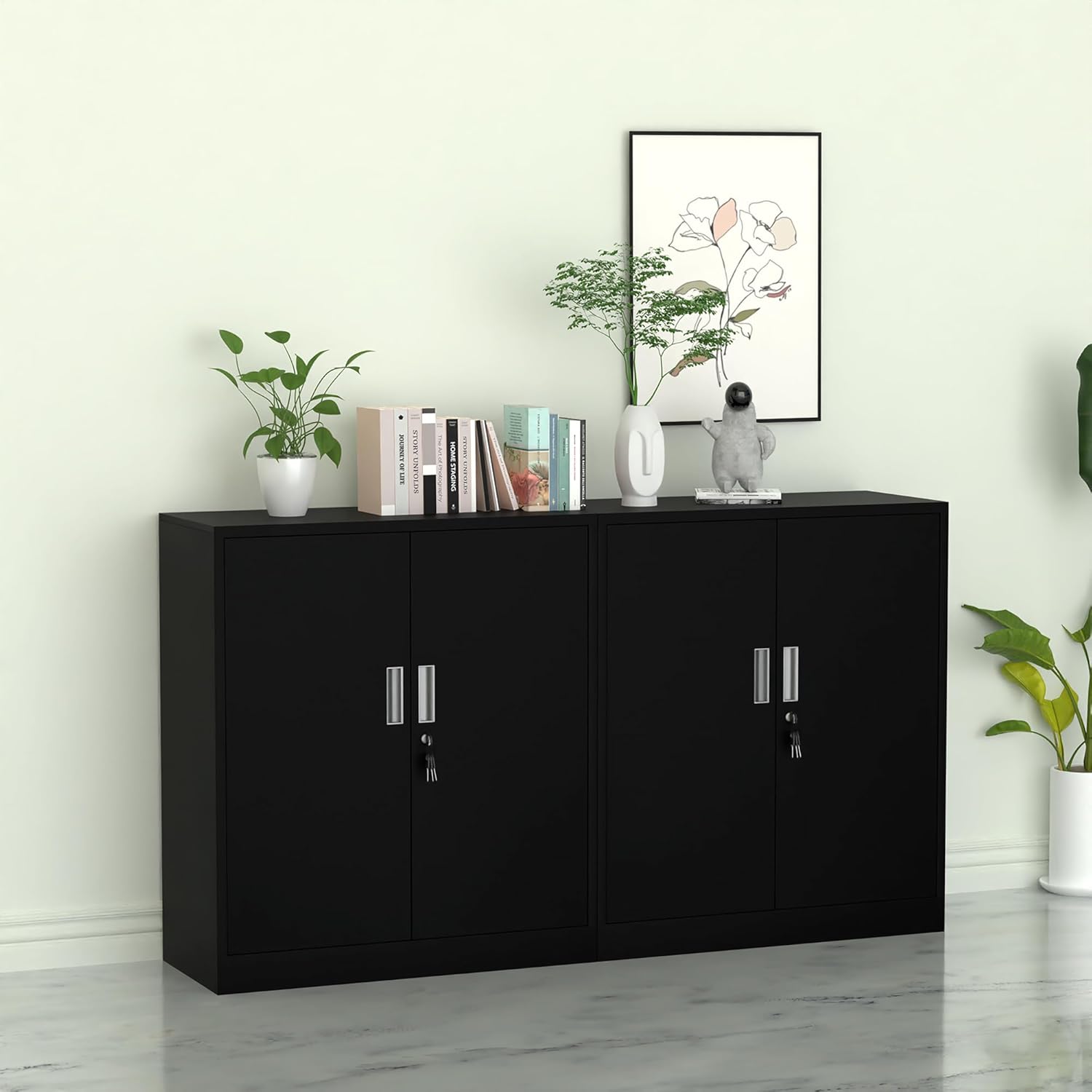 Metal Storage Cabinet with Locking Doors and 2 Adjustable Shelves, Small Lockable Steel Storage Cabinets for Home Office Garage Kitchen Pantry (Black)