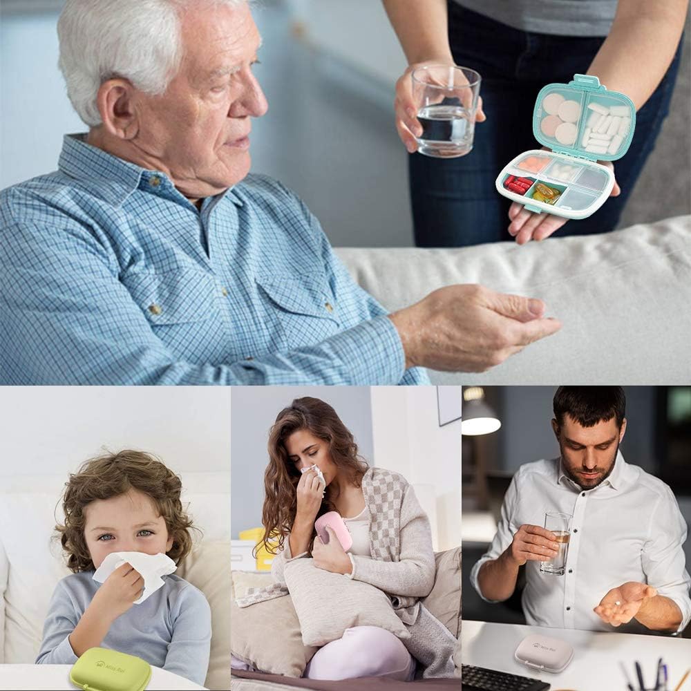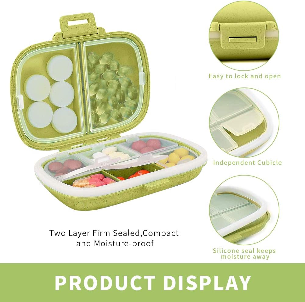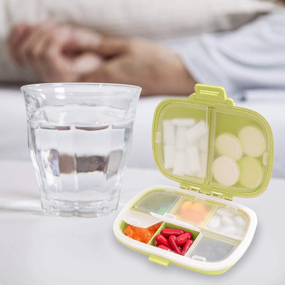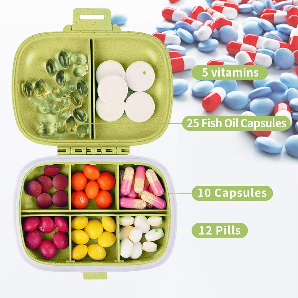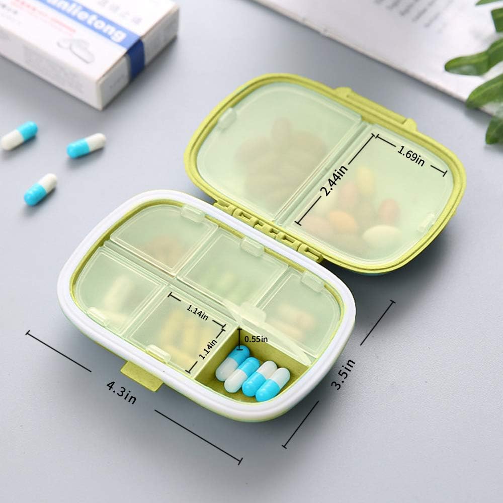 Miss Rui Travel Pill Organizer 8 Compartments Small Pill Case Portable Daily Pill Box to Hold Vitamins, Cod Liver Oil, Medicine for Pocket Purse Green