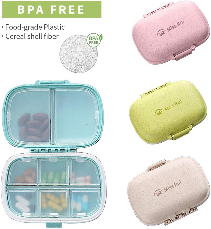 Safety Material: Miss Rui pill organizer box made of cereal shell fiber which is eco-friendly, sturdy and BPA free.
