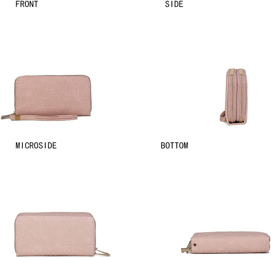 Aurora M Signature Wallet/wristlet by Mia K. exterior features an extravagant M detail and two separate zippered compartments. The interior of this stunning women designer wallet features multiple card and cash slots, including a unique compartment for a picture wallet. This wristlet has multipocketed, you know you can never go wrong with extra space whether is in a wristlet or any women handbags.