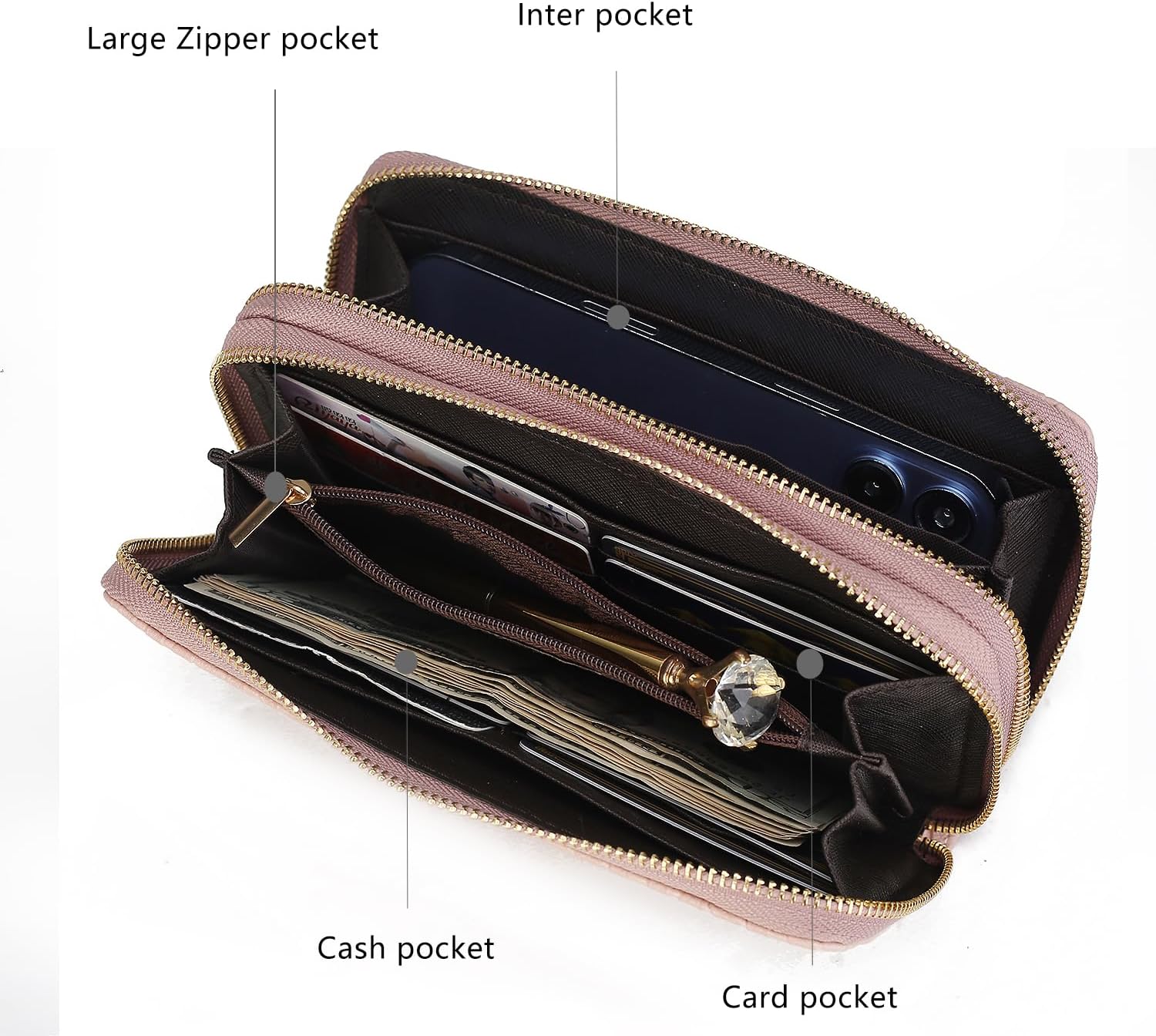 WEAR MORE WAYS: Carry the wristlet with handle strap, detach the wristlet band and wear it as a clutch wallet great for phone, credit cards, and cash.