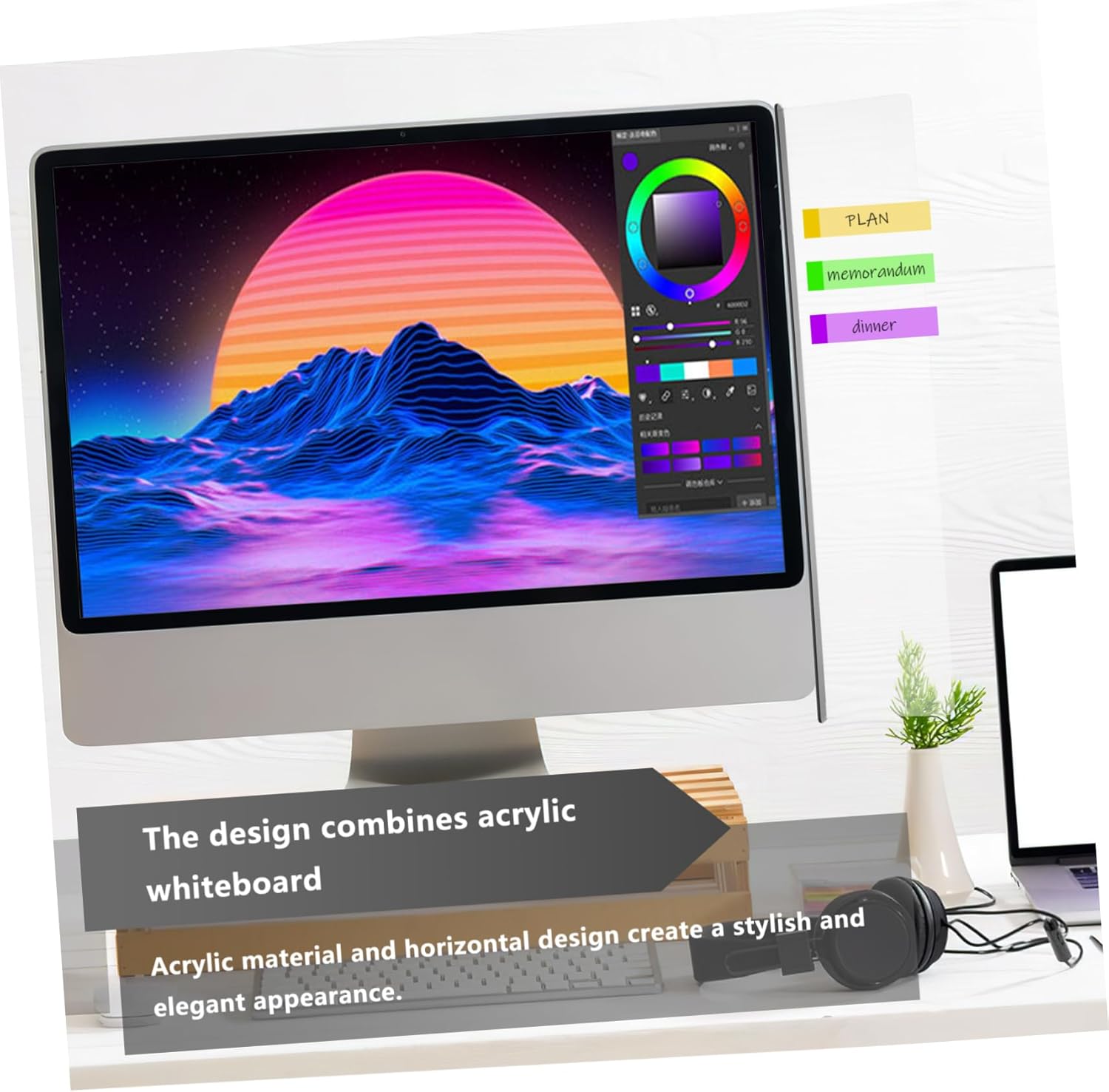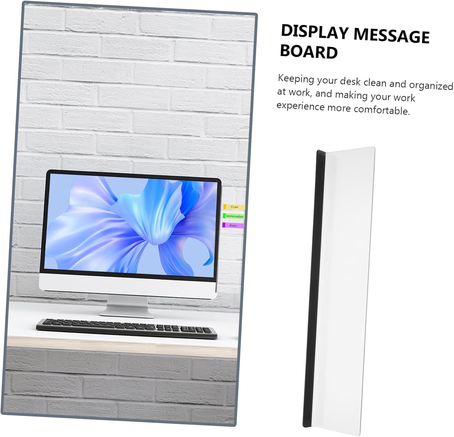 – Made with acrylic material, transparent and beautiful. The board can be pasted on the left or right sides of the computer monitor monitor memo note holder.