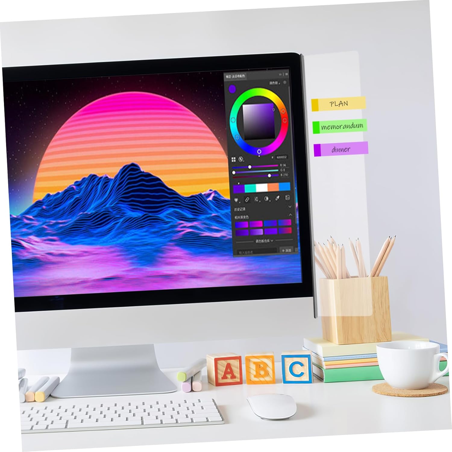 – Compact design, not easy to fall, keeping your memos and on it firmly. Rounded edges and corners, not easy to scratch computer side memo board.