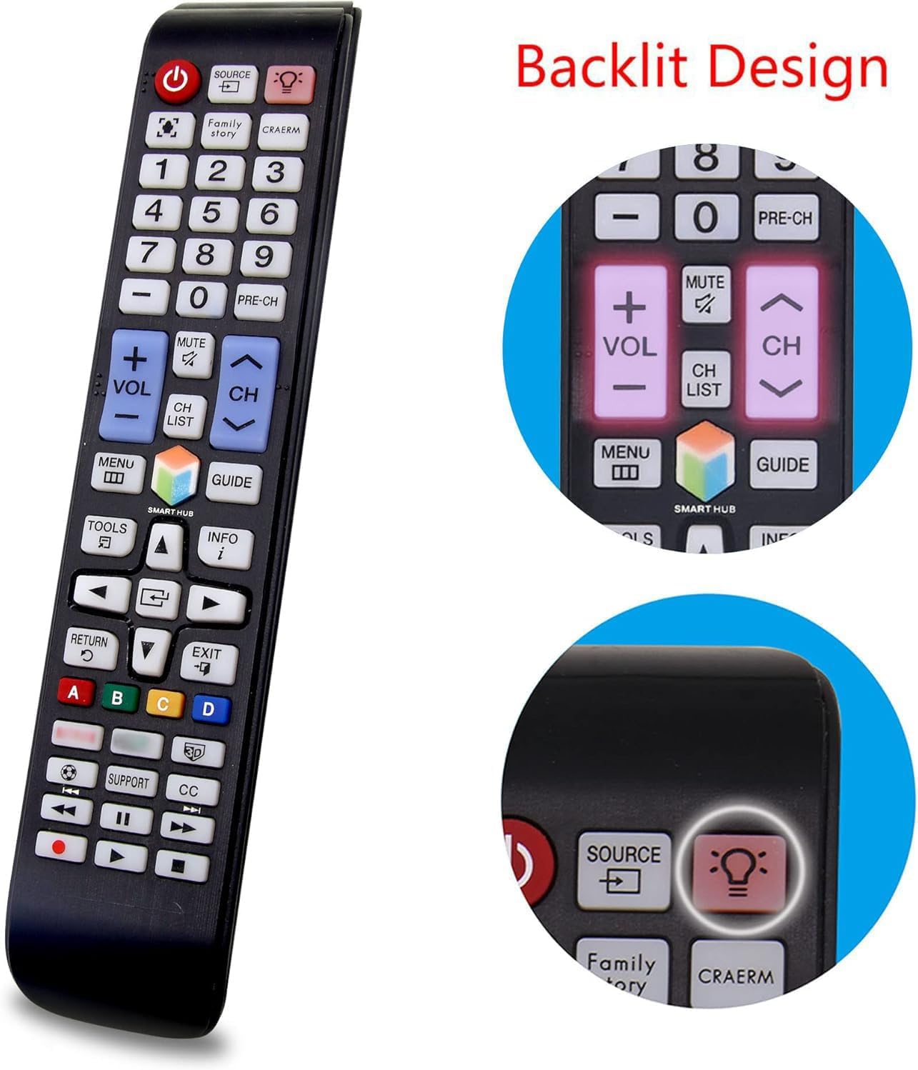 MYHGRC-Replacement Samsung Backlit TV Remote Control for All Samsung LED Smart TVs with Netflix, Prim Video, Smart Hub Button