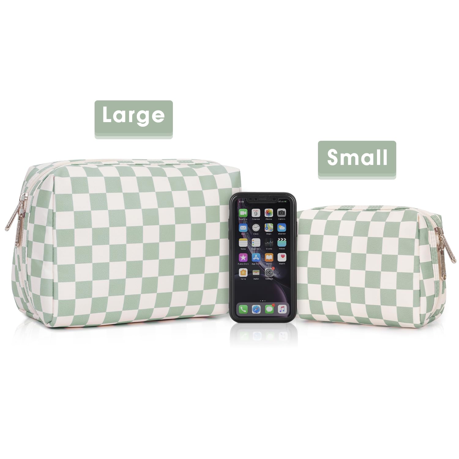 Narwey Checkered Makeup Bag Travel Cosmetic Bag Organizer Toiletry Bag Make Up Bags with Compartments for Women Girls (Large, Mint Green Checkerboard)