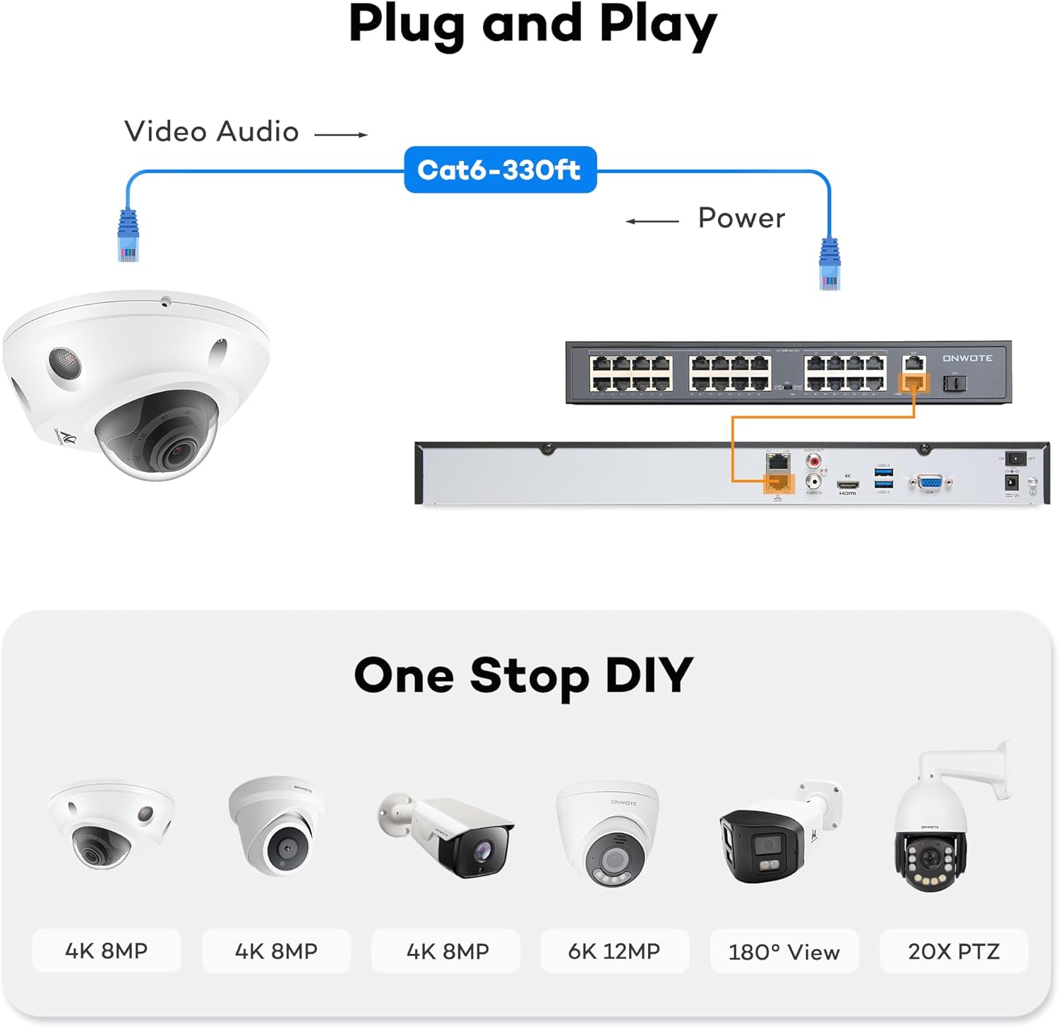 32CH 12MP NVR– Support 32pcs 12mp/ 8mp/ 6mp poe ip cameras, multiple add-on options from ONWOTE.