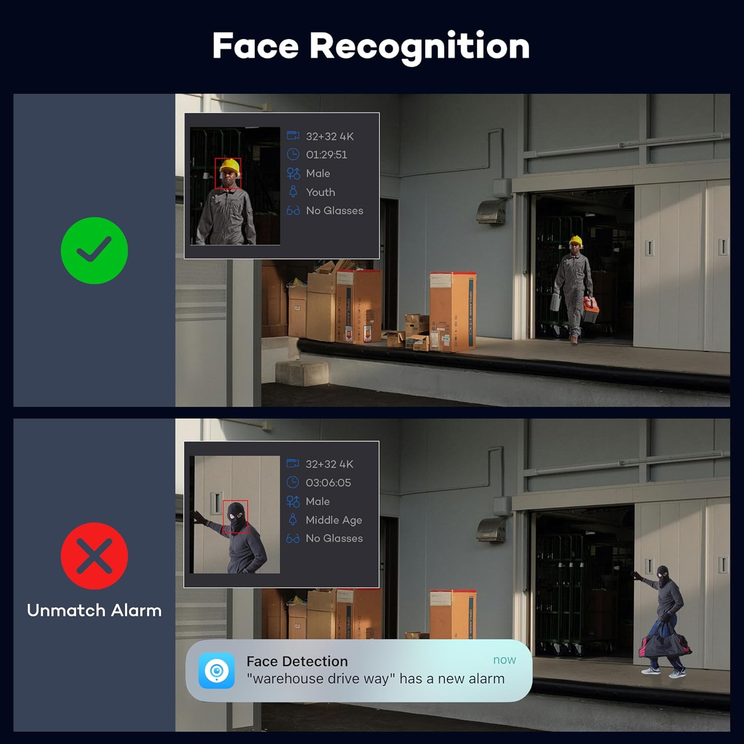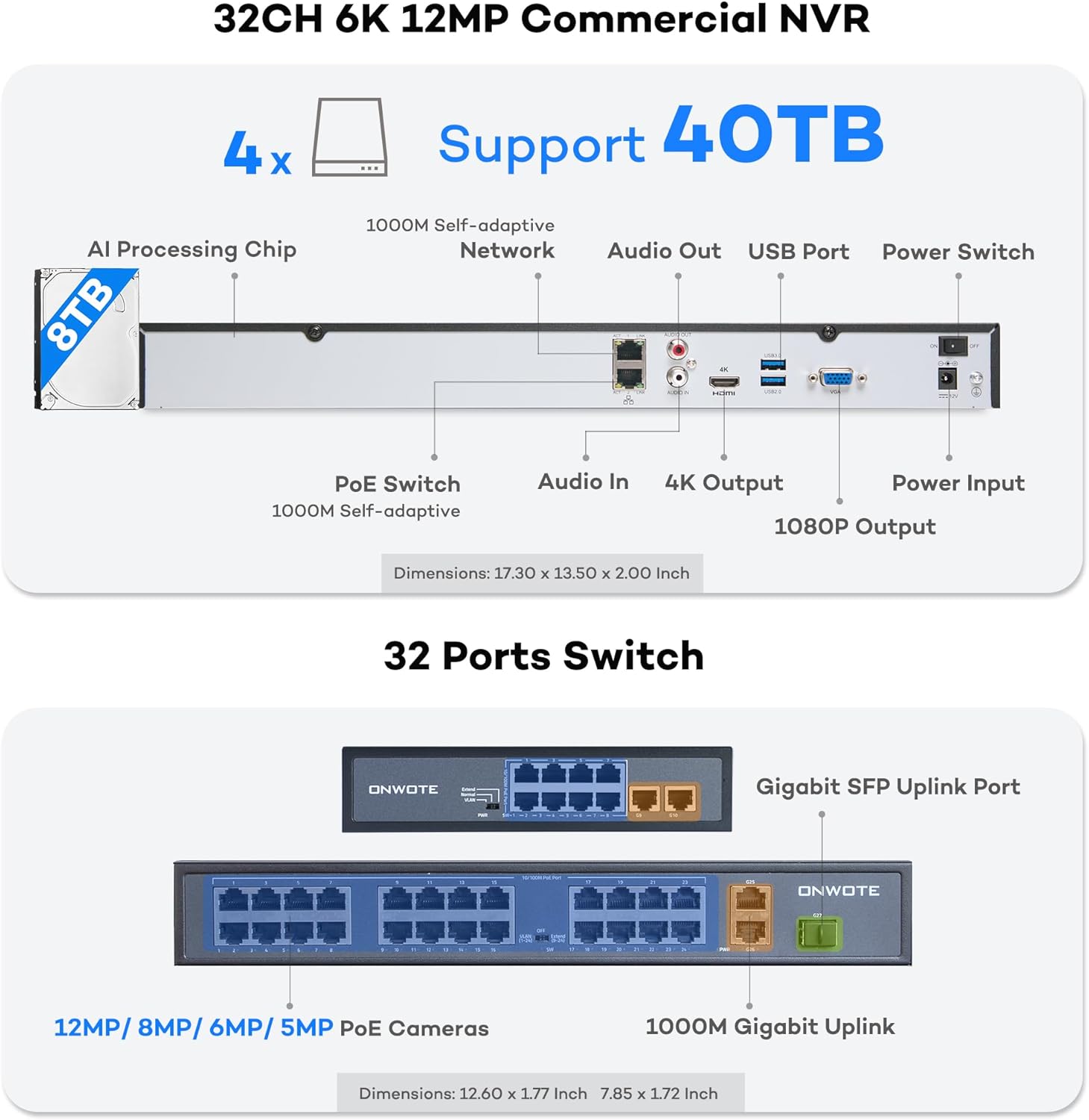 ONWOTE 12MP NVR 32 Channel Security Camera System, Face Recognition& AcuSearch, 32x 4K 8MP Vandal-Proof PoE IP Cameras, AI Color Night, 32CH Commercial NVR 8TB, 4 HDD Ports Support 40TB, Business CCTV