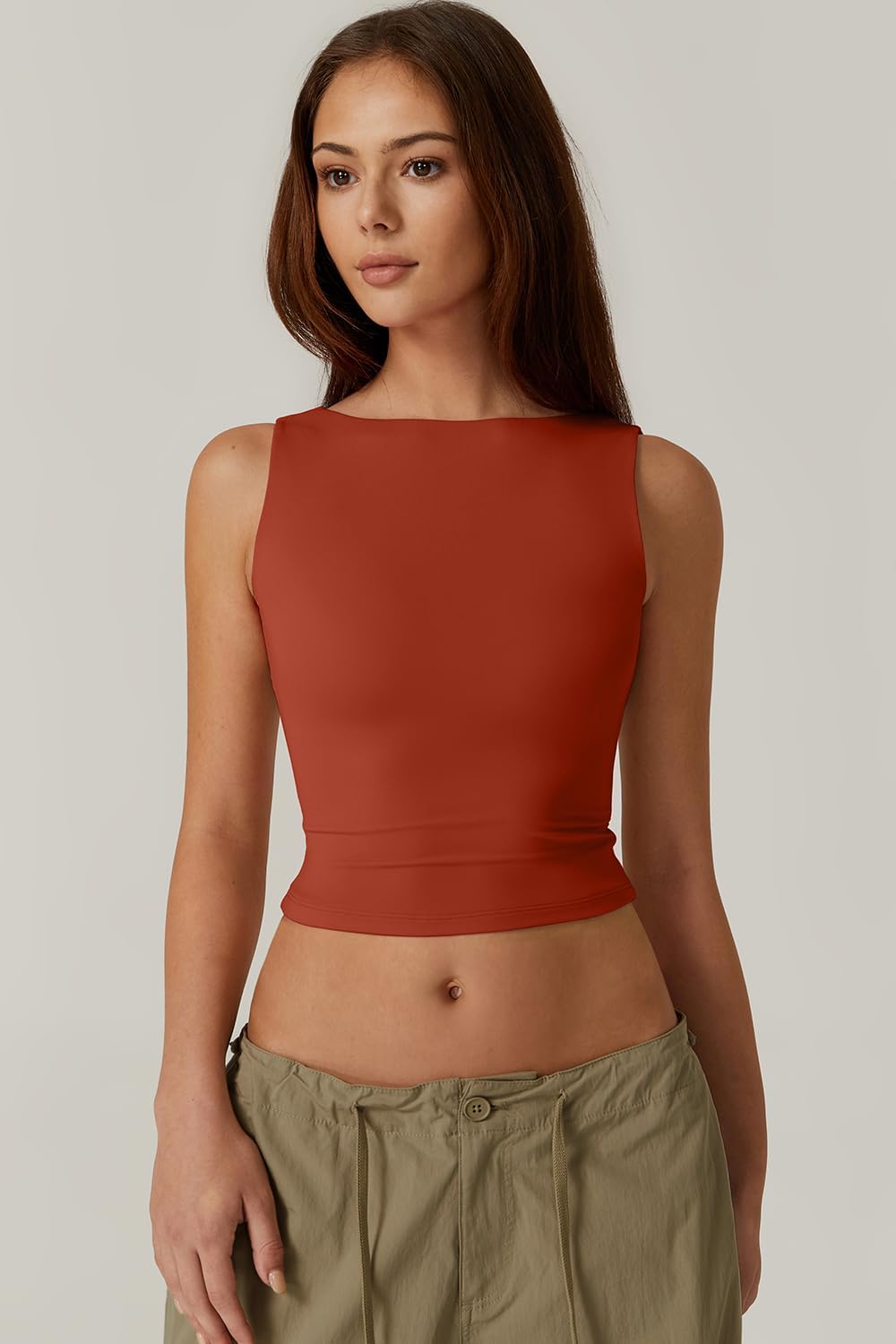 Designed for versatile styling. This crop top is an endlessly flattering design crafted from our signature breathable Polyamide fabric made with Elastane fibres that are naturally soft and smooth to the touch. It’s cut to a sleeveless silhouette with a high boat neckline and a statement open back, perfect for creating elevated day-to-night looks.