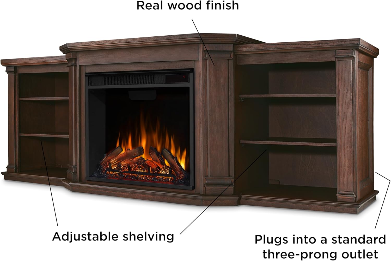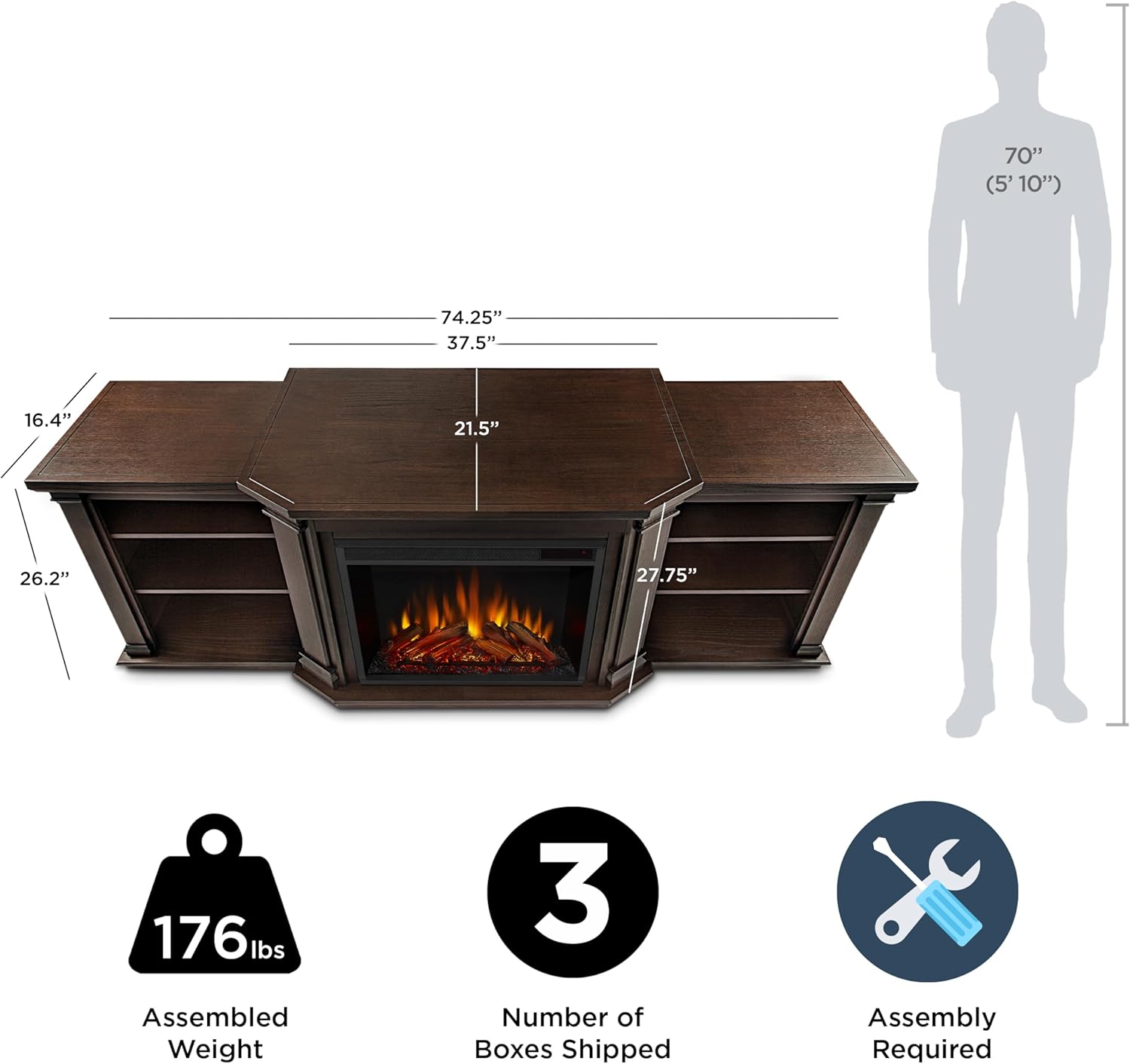 Real Flame Valmont 74″ Electric Fireplace TV Stand for TVs up to 70 inches, Entertainment Center with Adjustable Shelves and Storage, TV Stand for Living Room and Bedroom, Remote Control, Timer