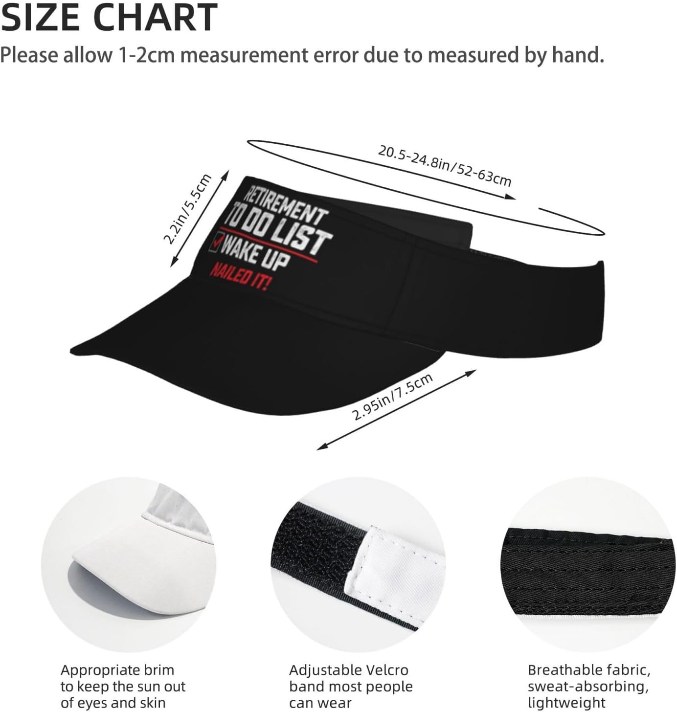 Retirement to Do List Wake UP Nailed It Visor Cap Sports Empty Top Hats Adjustable Sun Tennis Caps for Men Women92 Black