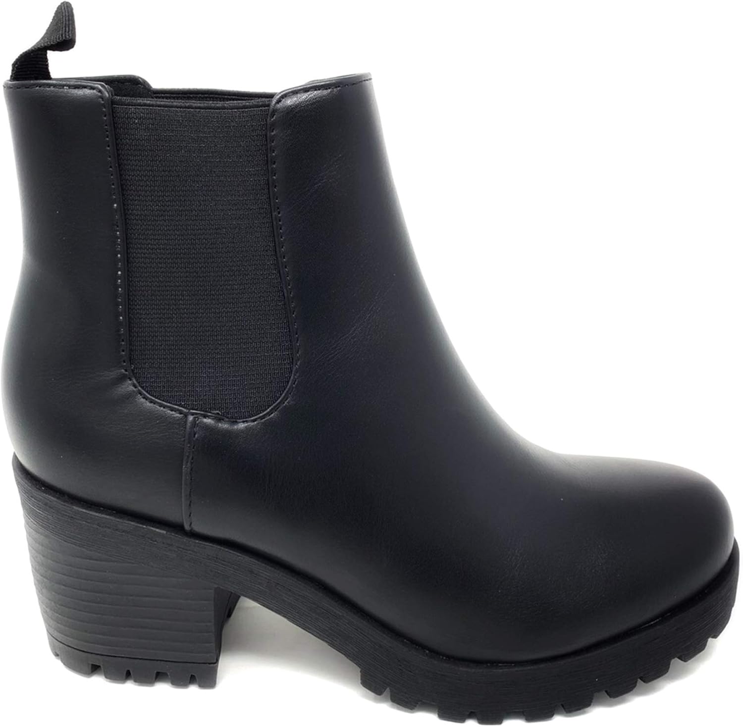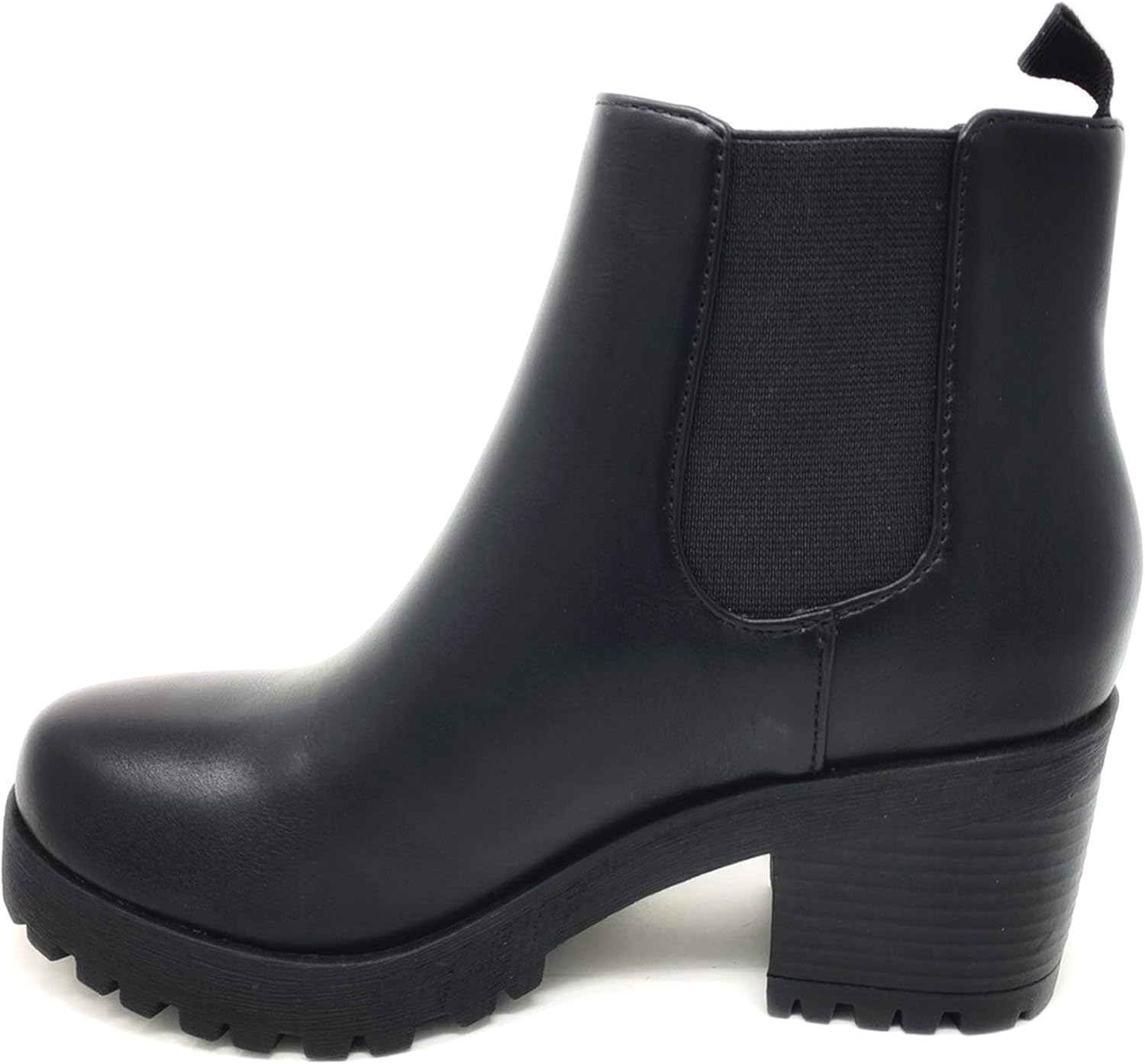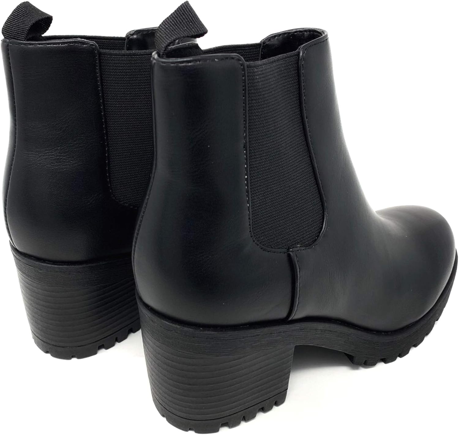 Soda Top Shoes Jaber Ankle Boot w/Lug Sole Elastic Gore and Chunky Heel