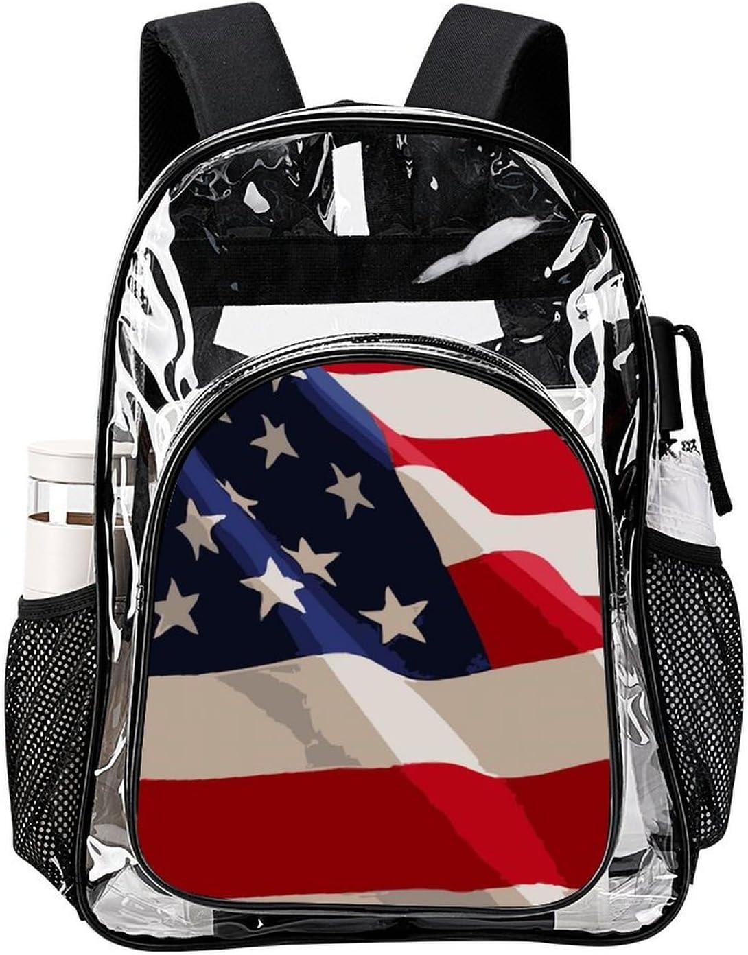 Travel Laptop Backpacks Large Bookbags Large See Through Bag Transparent Backpack Clear Bag (Red Blue White American Flag (24))
