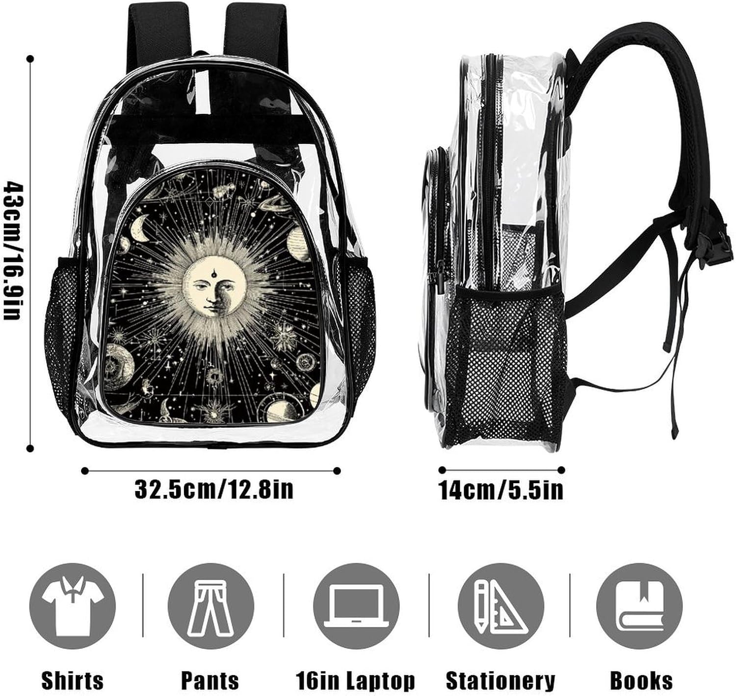 Travel Laptop Backpacks Large Bookbags Large See Through Bag Transparent Backpack Clear Bag (Vintage Sun And Moon Star Trail Art (1))