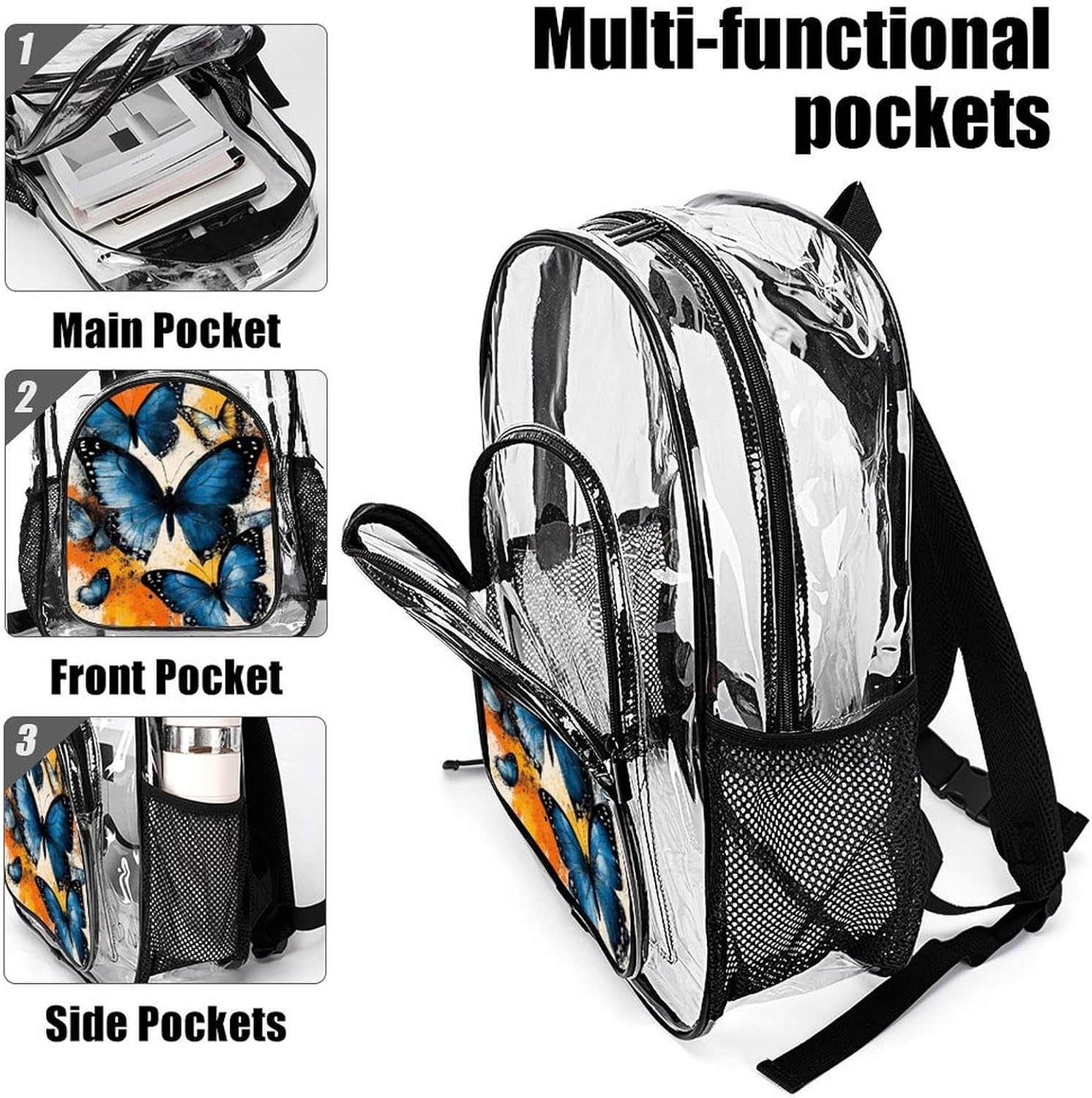 Travel Laptop Backpacks Watercolor Splashes Butterfly (3) Large Bookbags See Through Bag Transparent Backpack Waterproof Clear Bag