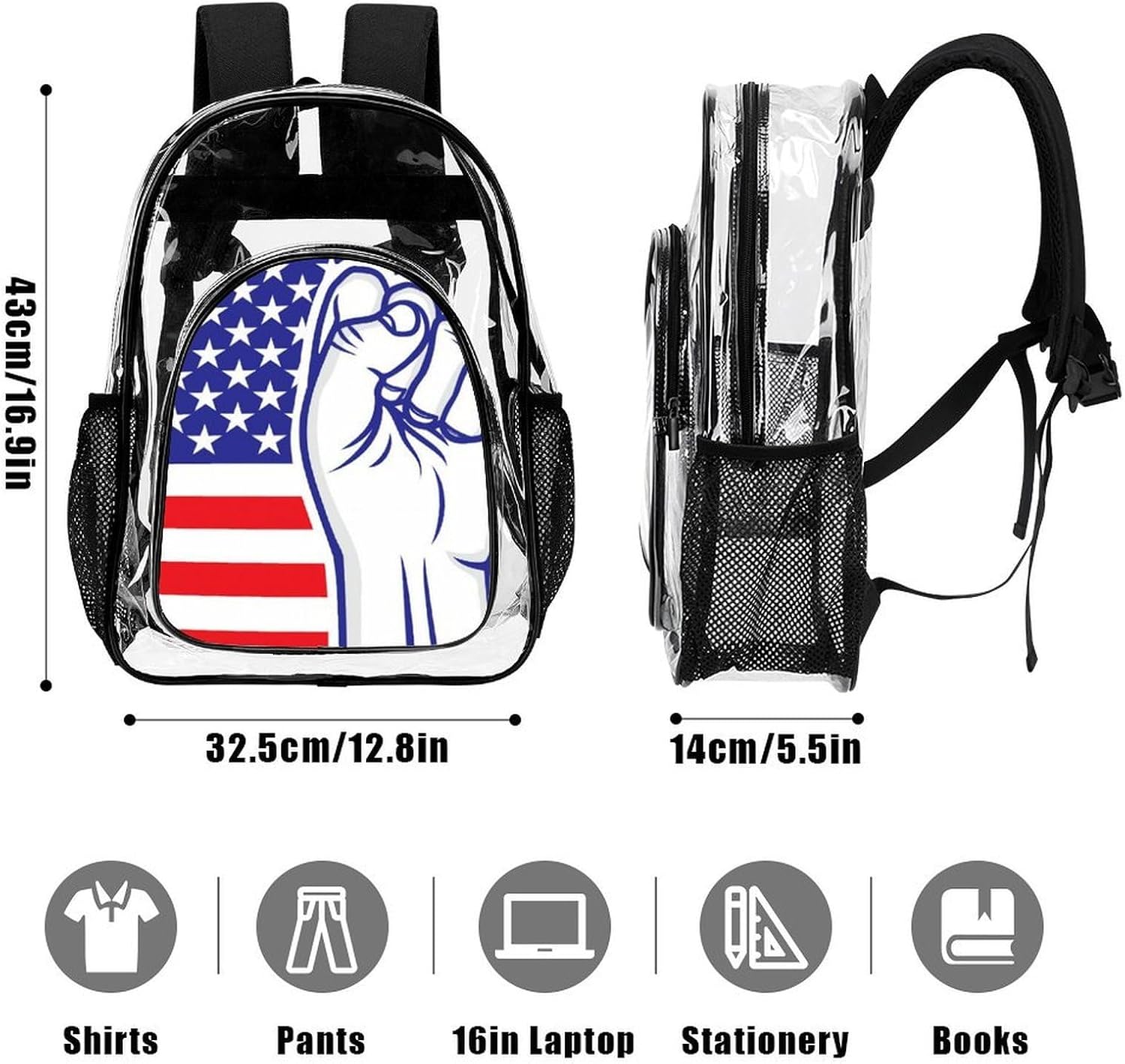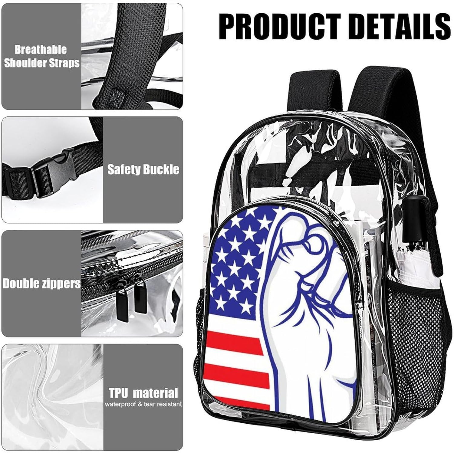 Travel Laptop Clear Backpack American Flag (2) Waterproof Clear Bag Transparent bag Transparent Backpack for Work