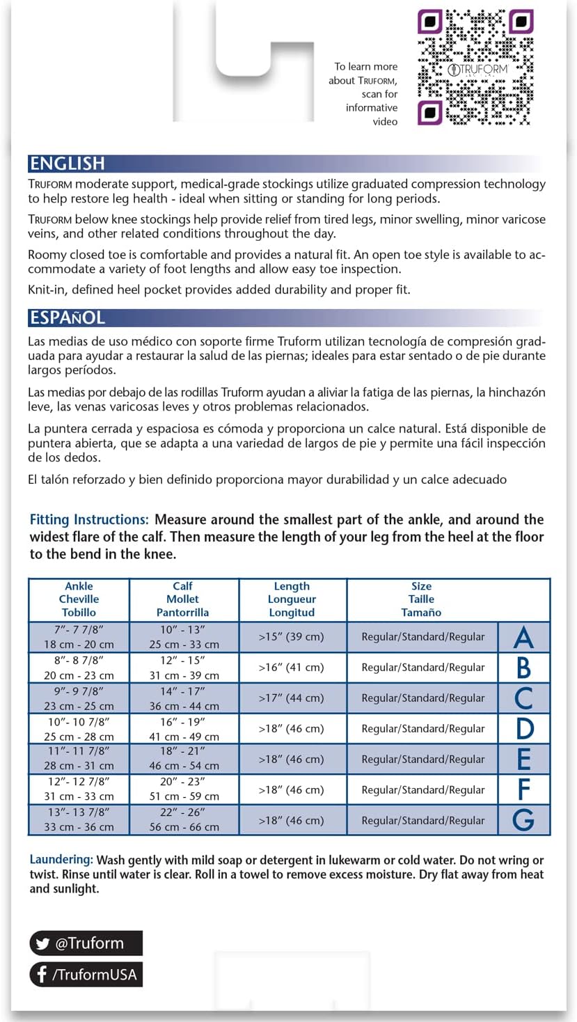 Truform 1783 from the Truform Lites series provides moderate graduated compression to help energize the legs and reduce discomfort. The 15-20 mmHg moderate compression level is great for leg fatigue and slight ankle, leg and foot swelling. They provide long-lasting support that appeals to today’s active, fashion conscious woman and serve excellently as both business and casual wear. Truform stockings, socks, and pantyhose feature Graduated Compression Technology, which delivers a compressive action to the leg that is greatest at the ankle, then gradually decreases toward the heart. This graduated compression provides two primary benefits to the legs: increased pressure on tissues beneath the skin helps reduce and prevent swelling for the wearer, and the compression action helps control the size of the superficial veins that lie just beneath the skin; preventing the slowing of blood flow so it can flow more quickly up the leg and back toward the heart. They feature five intervals of therapeutic graduated compression, doctor-recommended to help relieve tired, heavy, and aching legs, aid in the treatment of spider veins, varicose veins, and swelling of the leg and feet; ideal when sitting or standing for long periods of time. We take the extra time and effort necessary to insure a therapeutically effective, comfortable fit. The combination of state-of-the-art materials and equipment, plus knitting know-how sets Truform apart from the crowd to make your legs look and feel great.