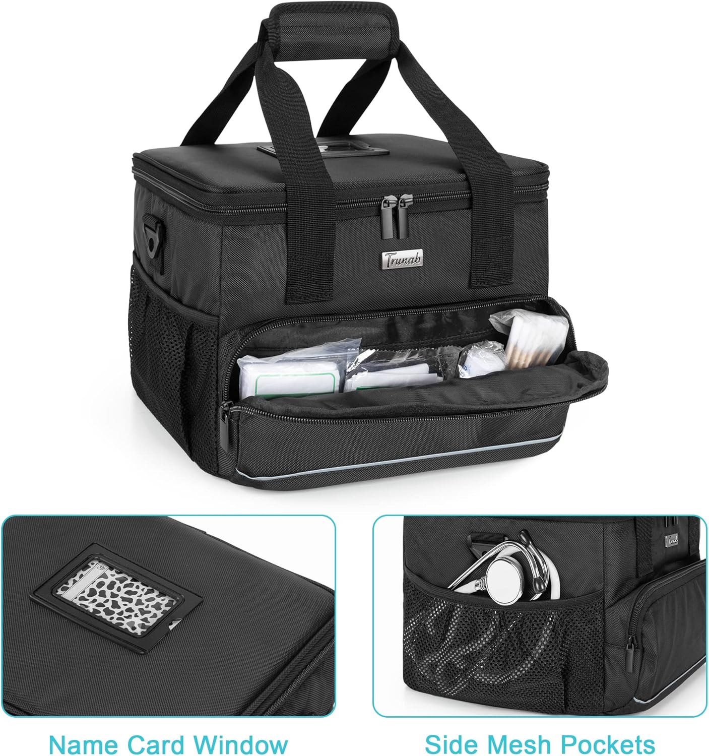 Be the first to review “Trunab Insulated Medical Bag with Adjustable Dividers, Medicine Supplies Water-Resistant Bag for Home, Travel, Camping, Empty Bag – Patented Design,Black”