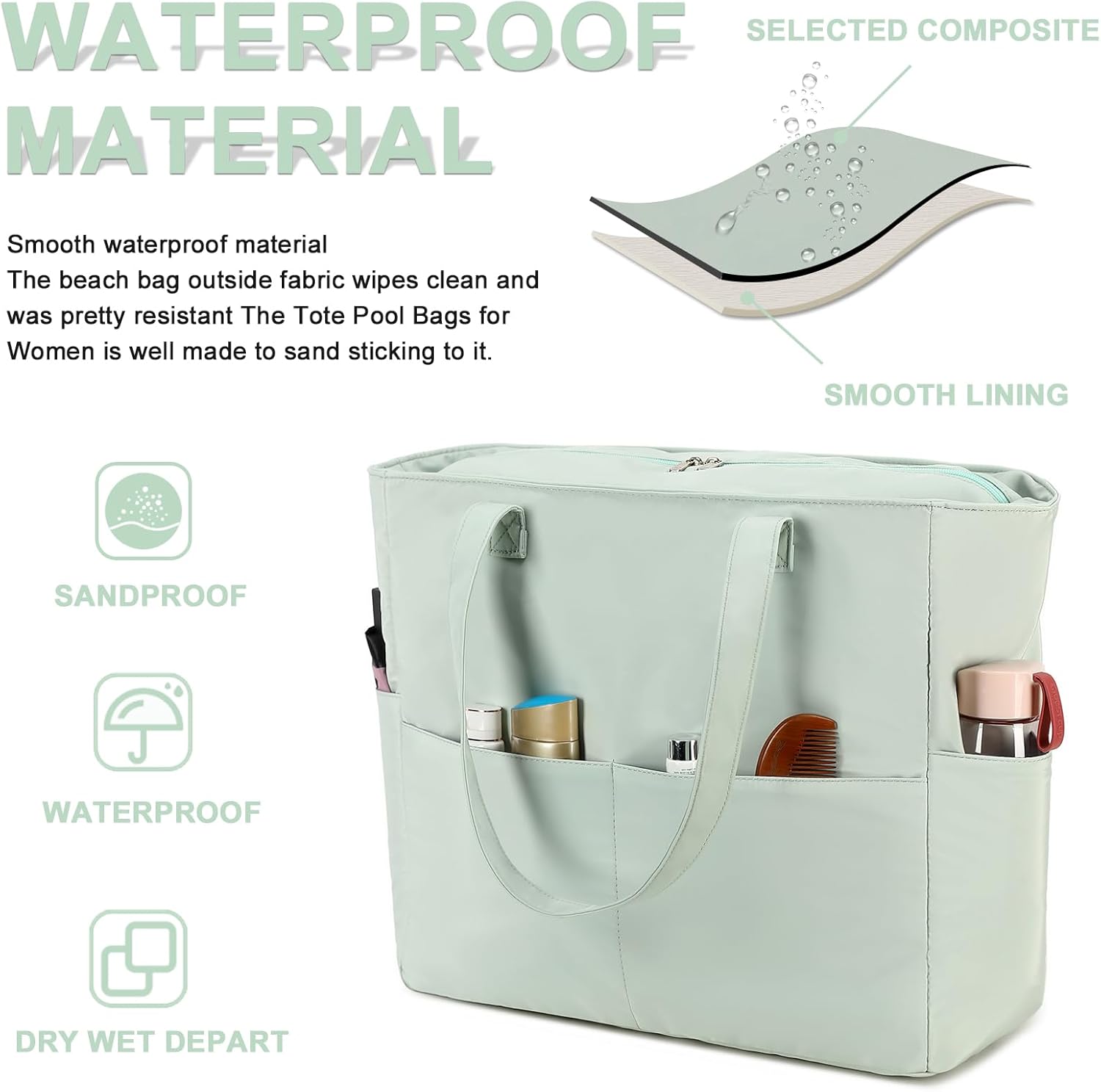 Waterproof Beach Tote Pool Bags for Women Ladies Extra Large Gym Tote Carry On Bag With Wet Compartment for Weekender Travel