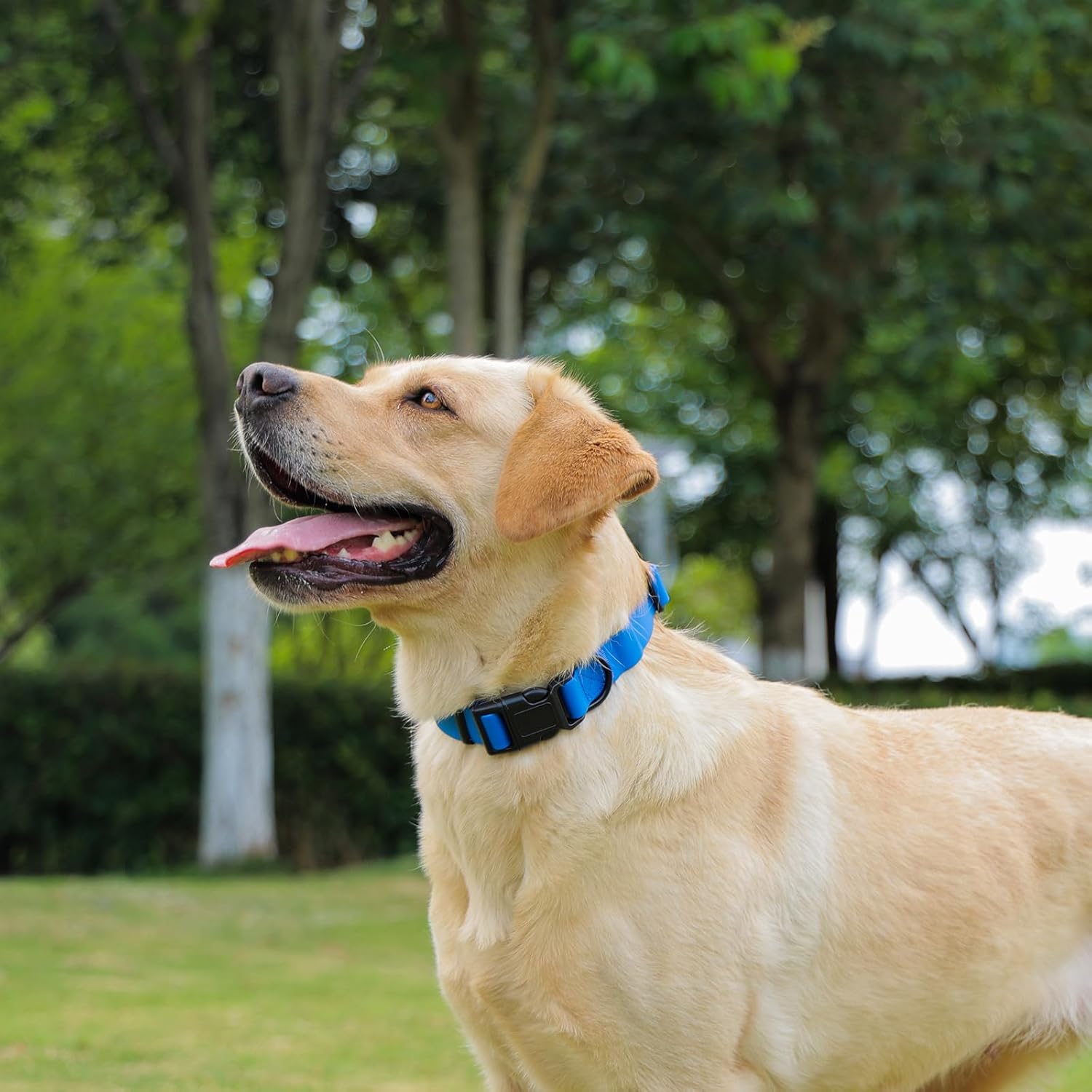 WATERPROOF COLLAR – Our waterproof dog collar, crafted from coated nylon webbing, is specially designed to resist dirt and odors, offering superior advantages over typical nylon collars. Perfect for beach outings, muddy adventures, or romps in the grass, ensuring your dog stays comfortable and clean during outdoor activities.