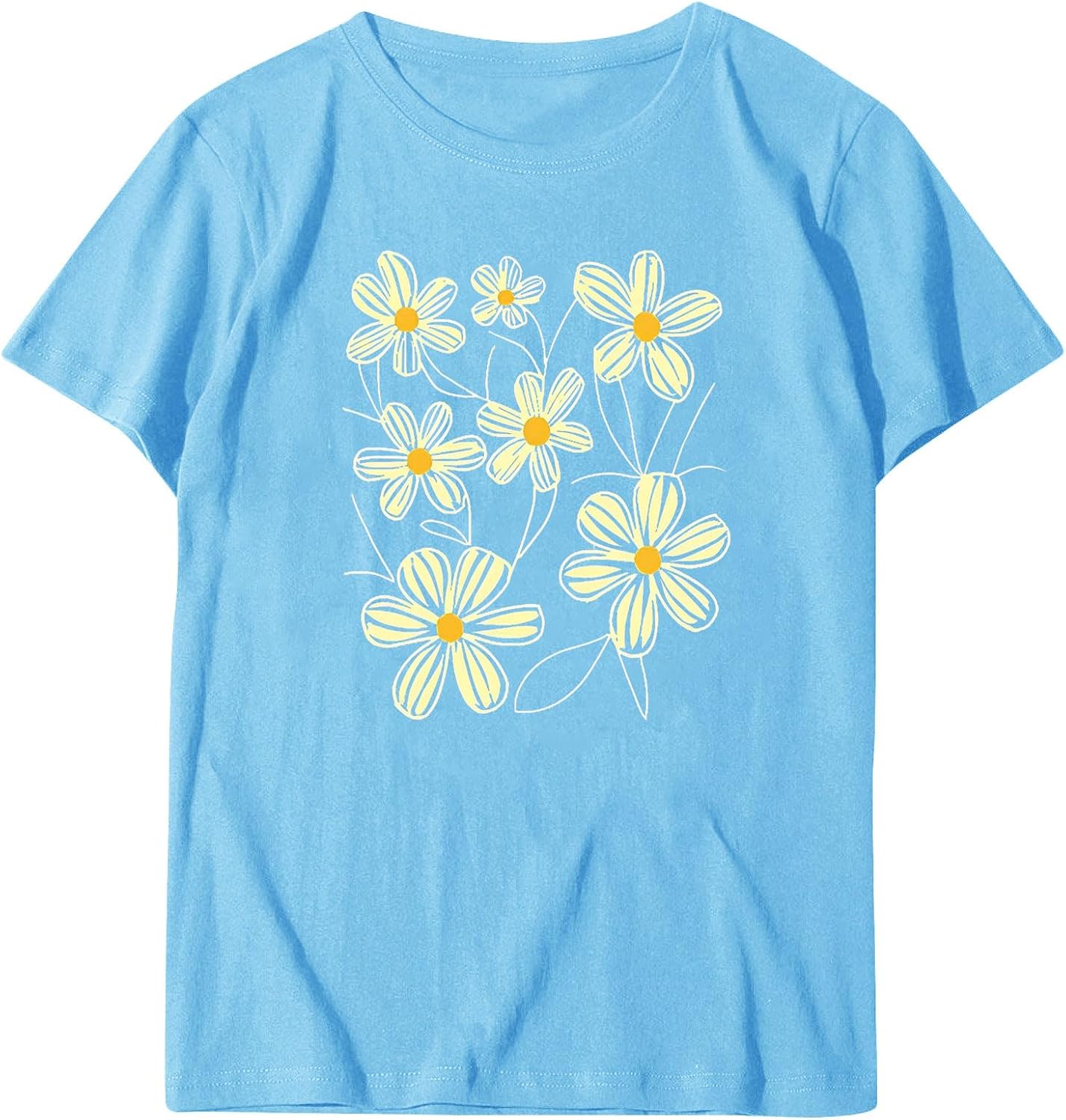 Womens Blouses Short Sleeve Floral Crew Neck Tops Trendy Dressy Casual Summer Loose Fit T Shirt Ladies Blouses