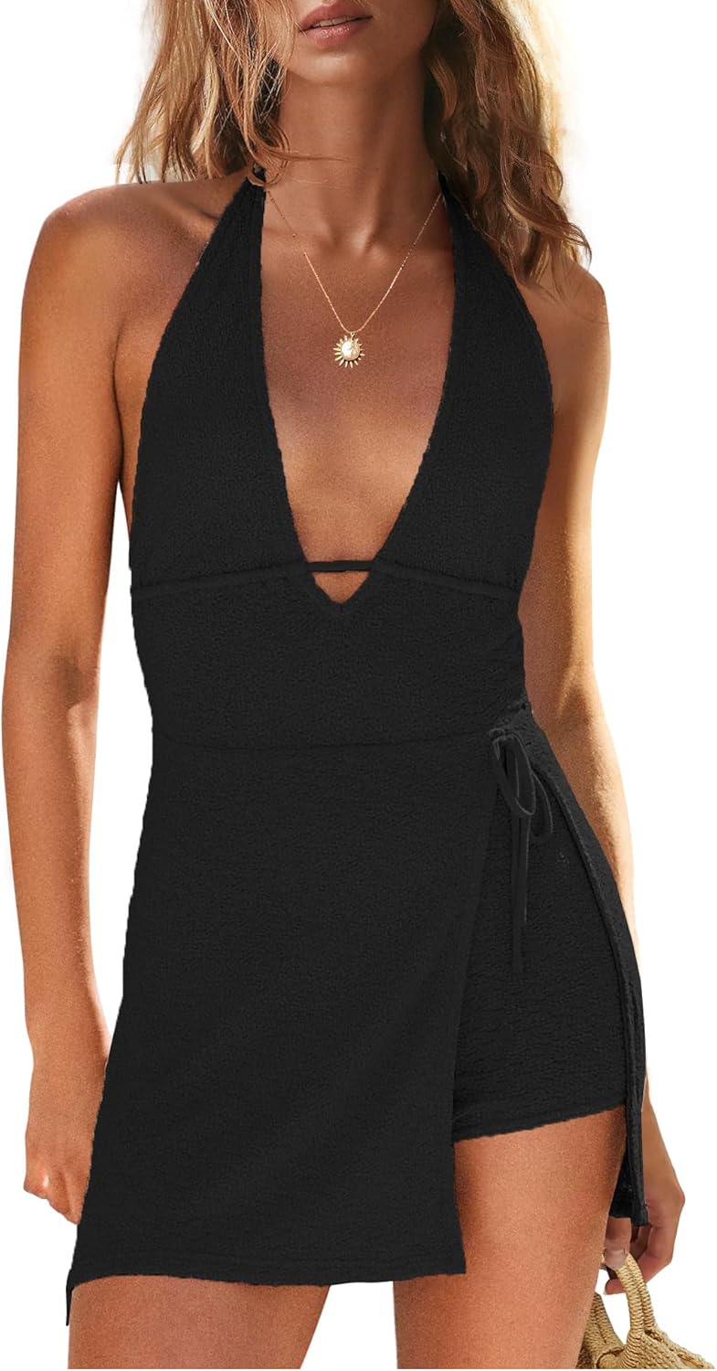 Yanekop Womens Romper Dress with Shorts Underneath Summer Short Jumpsuits Open Back Sexy Beach Vacation Dresses