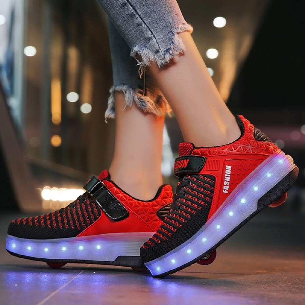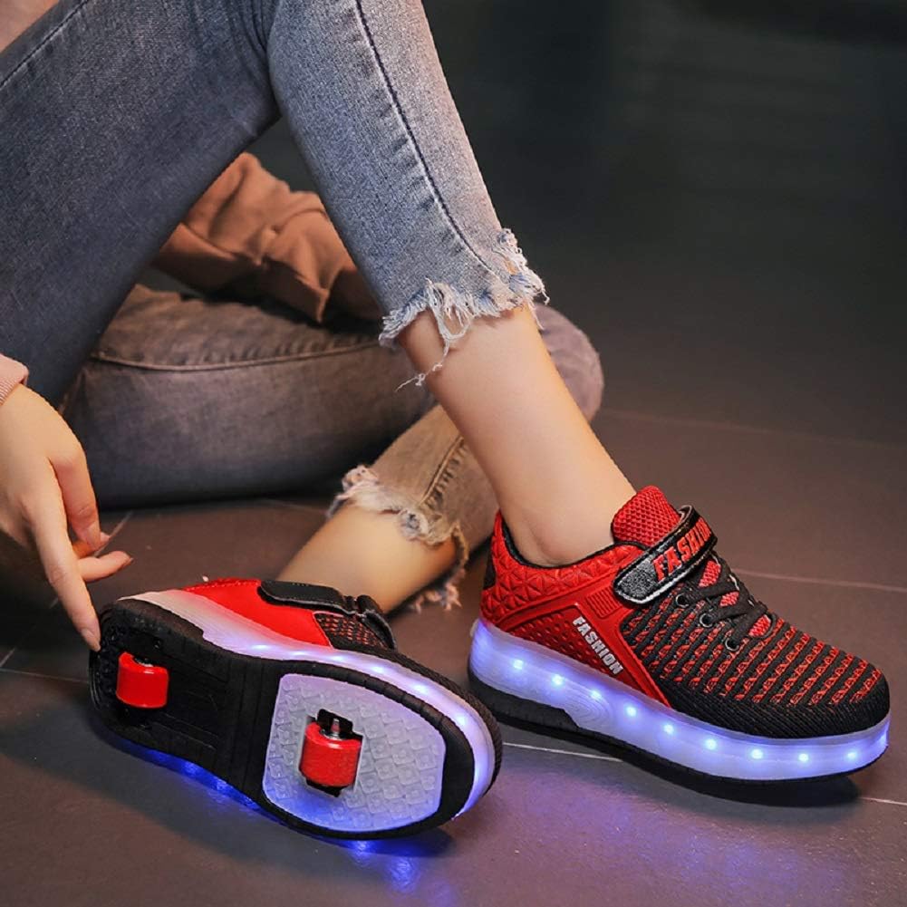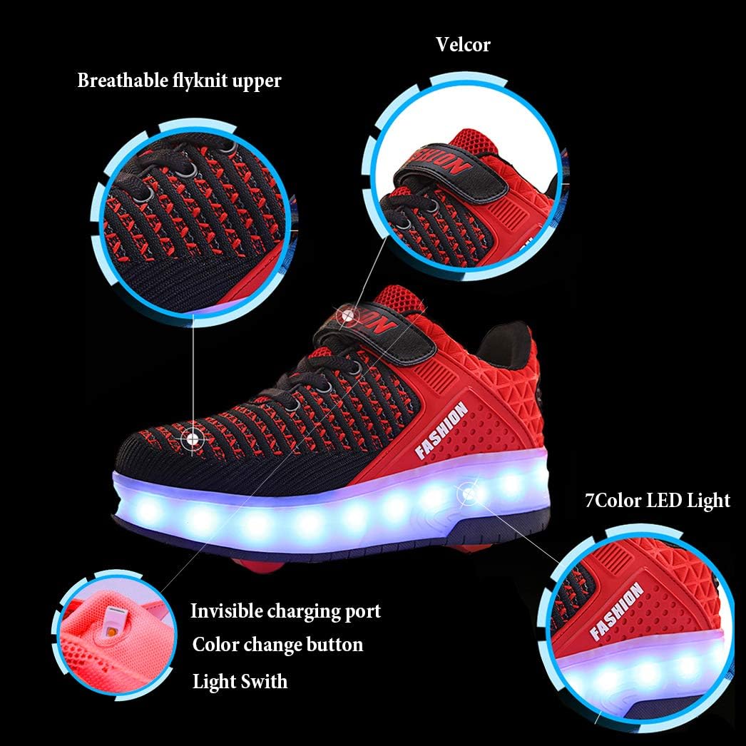 Ylllu Breathable and Comfortable Kids LED USB Charging Roller Skate Shoes Tennis Shoes with Wheel Shoes Light up Roller Shoes