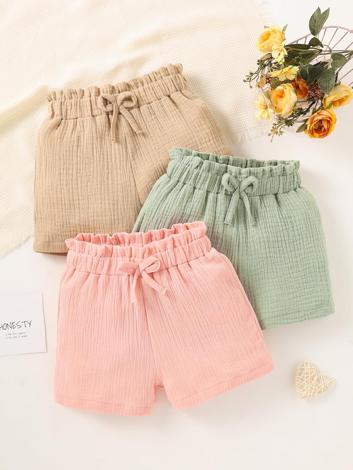 Yvowming 3 Pack Girls Shorts Pants Casual Linen Cotton Shorts for Toddler Girls Kids Summer Clothes (Ages 4-12)