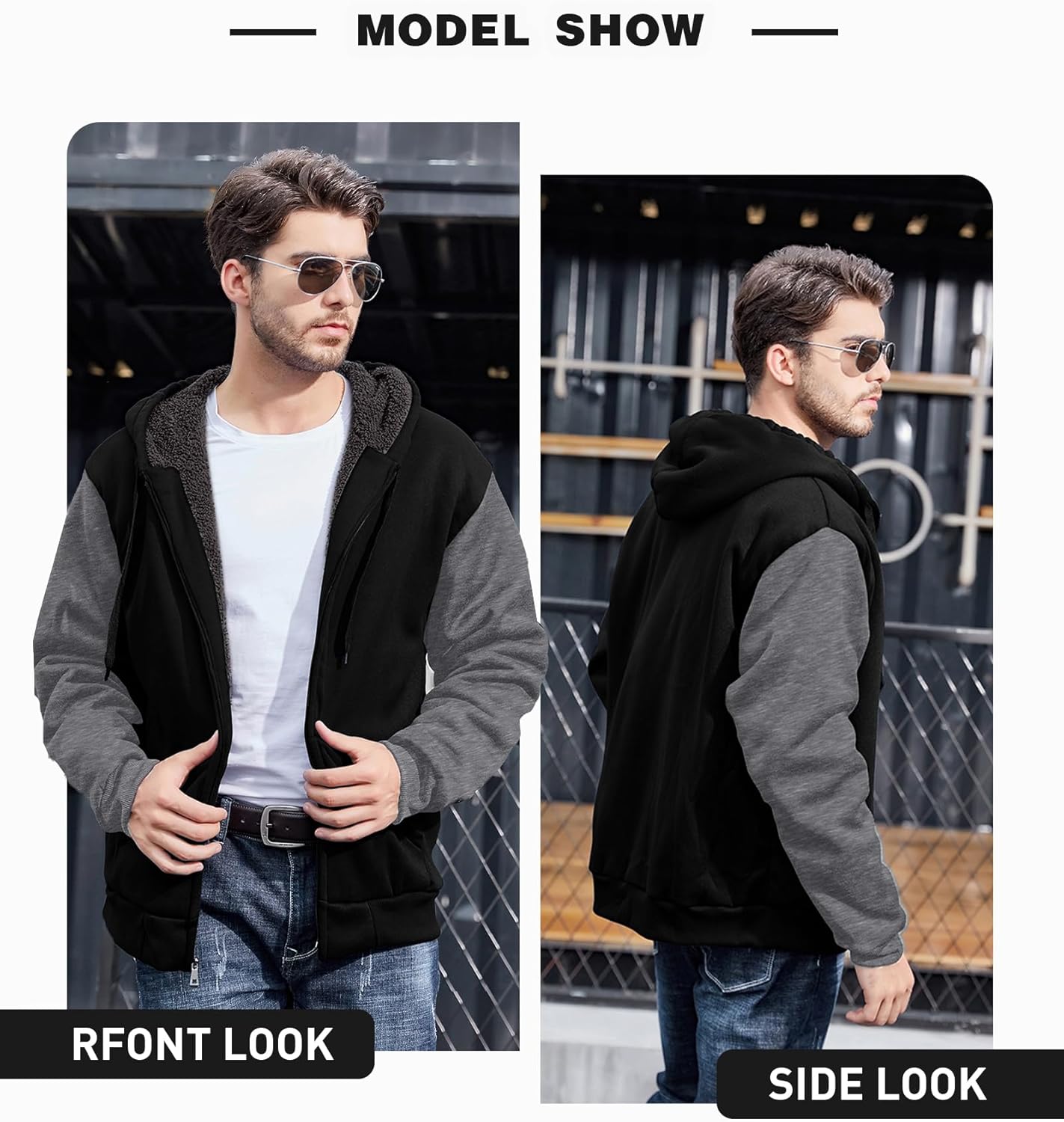 ZITY Men’s Zip Up Hoodie Heavyweight Winter Sweatshirt Fleece Sherpa Lined Warm Jacket